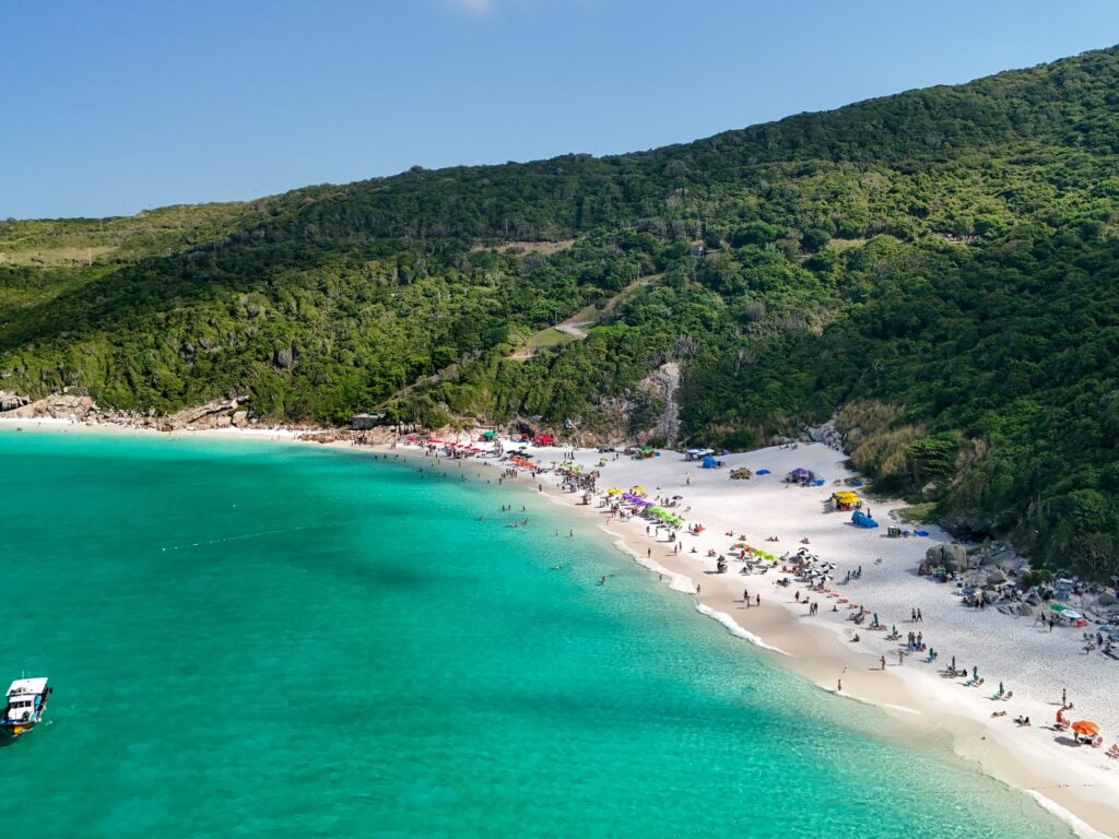 Praia do Forno, cerca de Arraial do Cabo, en Brasil. Foto ShutterstockLa otra forma de llegar es por vía terrestre. Charly indica: «Especialmente si el mar está más picado, se puede ir con un taxi o un auto alquilado. Pero en ese caso, hay que tener cuidado con los lugares para estacionar porque se agotan muy rápido. Y el camino es angosto».
