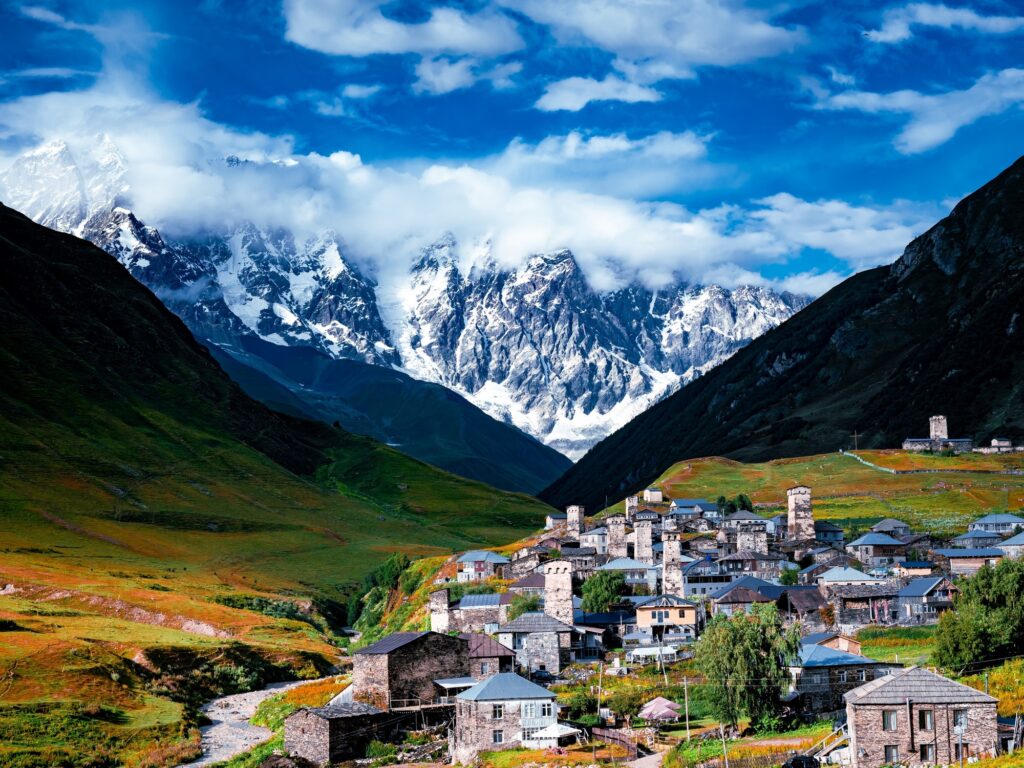 Entre las características distintivas de la zona, hay un elemento arquitectónico que se destaca: las torres de piedra familiares (Torres Svan), construidas entre los siglos IX y XVIII como estructuras defensivas, todo un sello del paisaje.