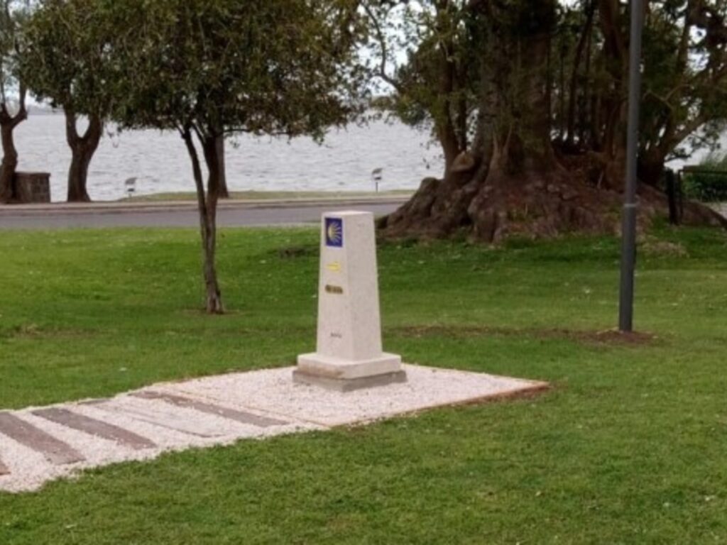 La última referencia, donada por la Xunta de Galicia, es similar a la señalización que encuentran los caminantes del norte de España para saber que distancia les resta recorrer para llegar a destino. En este caso, el típico bloque de piedra y hormigón indica con una flecha orientada hacia el norte que 10.976 kilómetros separan Chascomús de la capital de la Región de Galicia.